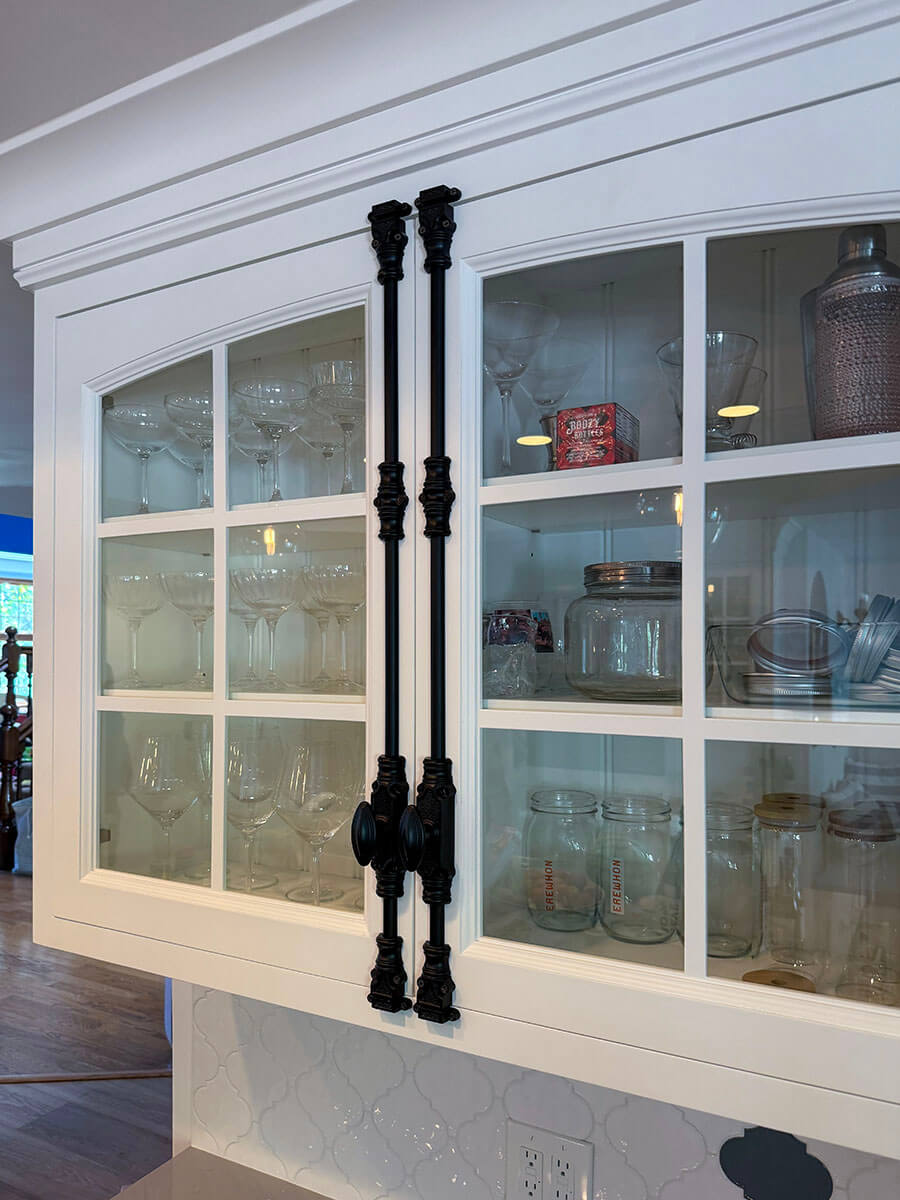 Unlike most cabinet shops we do not specialize on a single line of cabinets. Yes, we will build your kitchen, closet, garage cabinets, but we do not stop there? Custom bar, fireplace mantel, credenza, china cabinet, entertainment center, even bed or night stand, we do it all. You choose the style, design, color, and placement, and we make it for you. Starting from draft until the delivery, we work with you, and your satisfaction is our main priority. This picture gallery illustrates the wide diapason of our abilities.